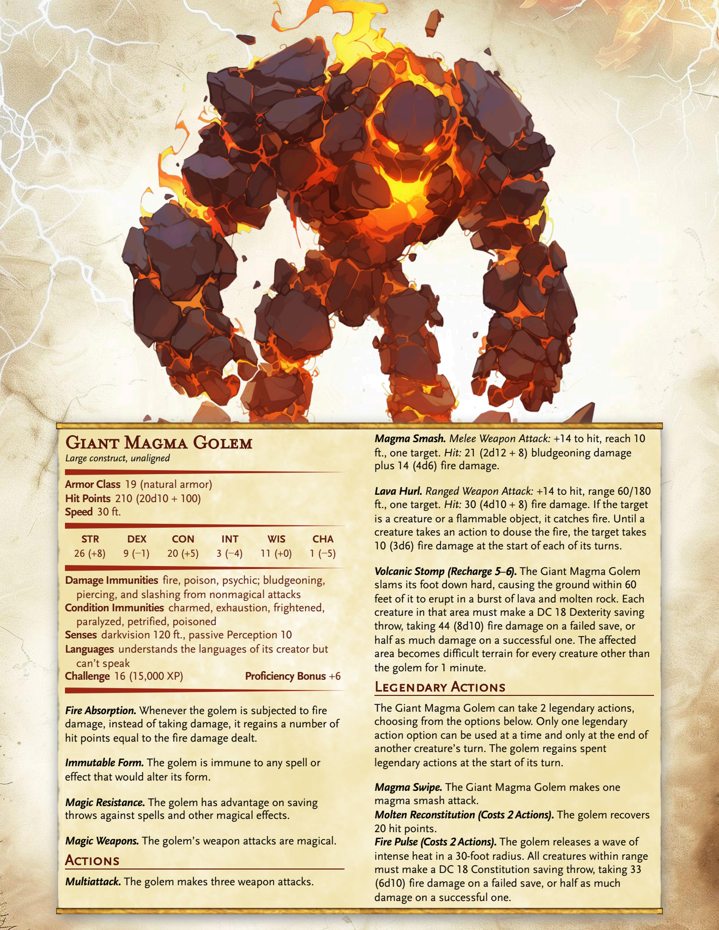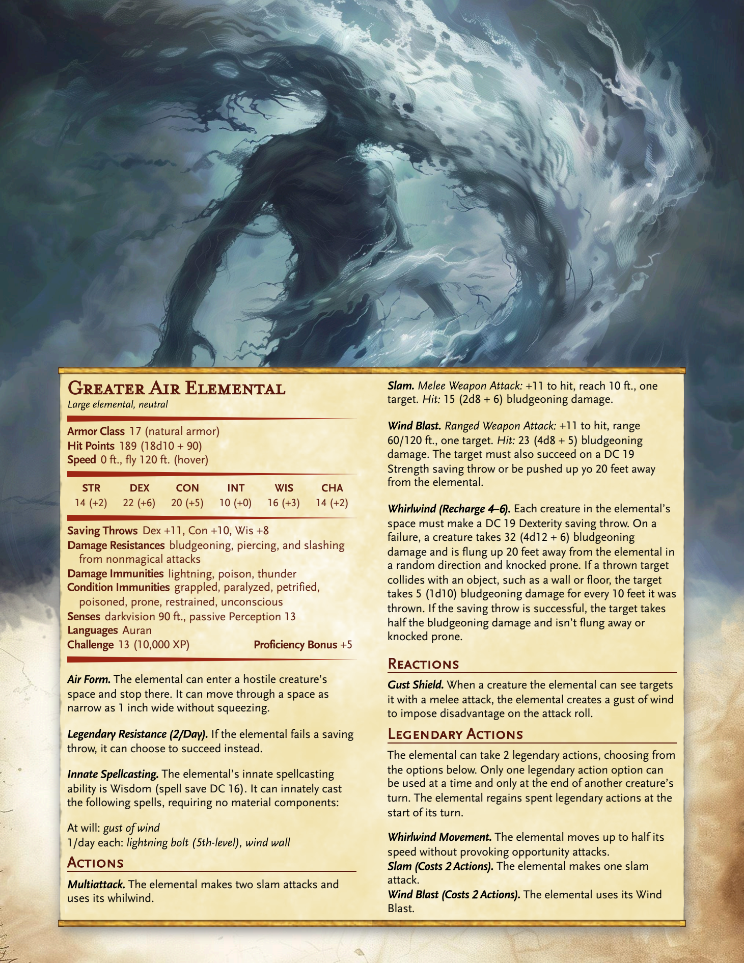 Elemental Feats, Spells, and Creatures: Enrich your game with over 40 new elemental spells. Encounter a vast bestiary, including Greater Elementals, Elemental Lords, and numerous other beings capable of wielding elemental powers, from sprites to behemoths.